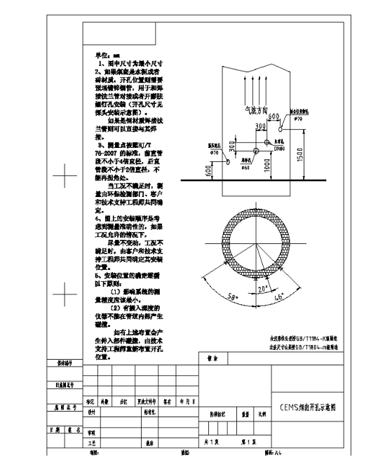 2、開孔的位置位于煙囪直徑的四倍處,開相應的4-5個孔,如圖