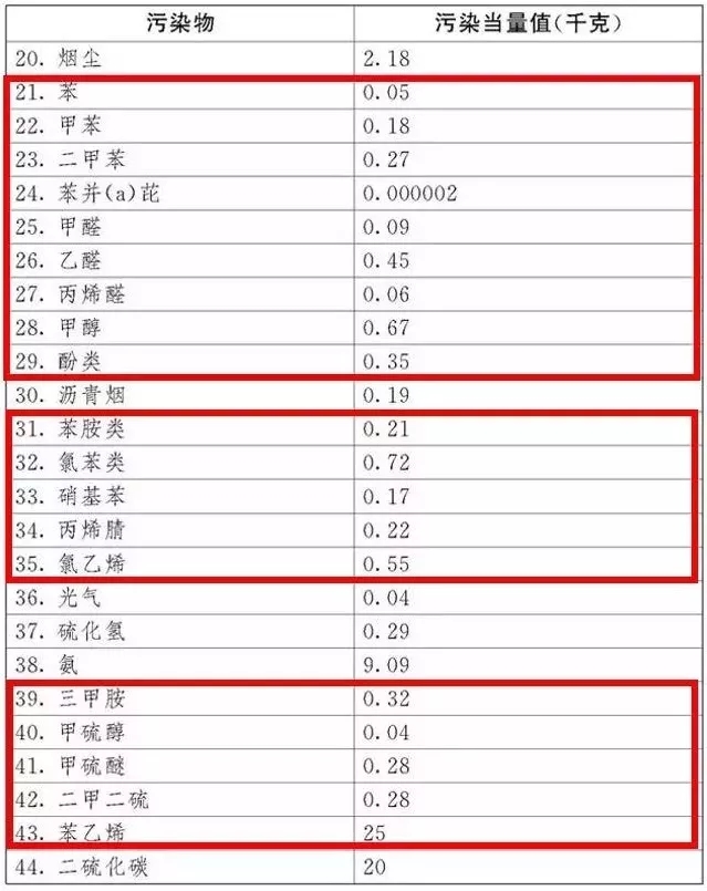 其中涉及VOCs的應(yīng)稅污染物的污染當(dāng)量值節(jié)選如下:
