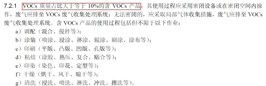 無組織收集:鼓勵源頭削減,企業使用的原輔材料和產品中VOCs含量占比小于10%(質量含量),根據本標準的相關規定豁免相應的措施要求;可不要求采取無組織排放收集措施