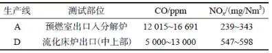 表4 A和D生產線預燃室或流化床爐出口煙氣成分圖2 三種不同系列的分解爐