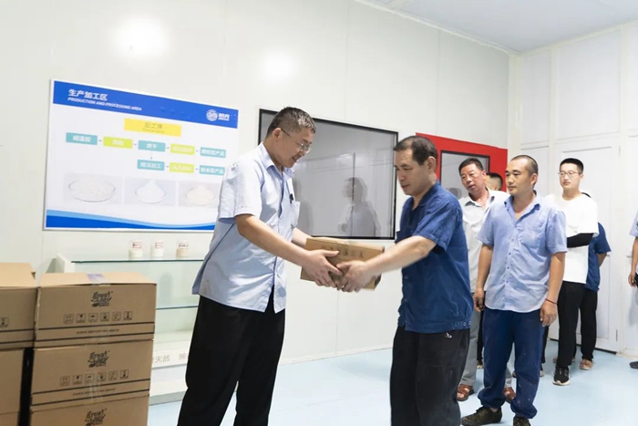 心系職工送清涼,一縷清風入心田。隨著區(qū)總工會“夏送清涼”活動的開展,8月3日,區(qū)總工會副主席朱長濤、生產保護部部長李輝赴明月海藻集團為廣大一線員工送來了礦泉水、飲料、毛巾、洗發(fā)水、沐浴露、花露水等慰問品。集團黨委副書記逄錦龍、工會主席楊曉菁陪同。