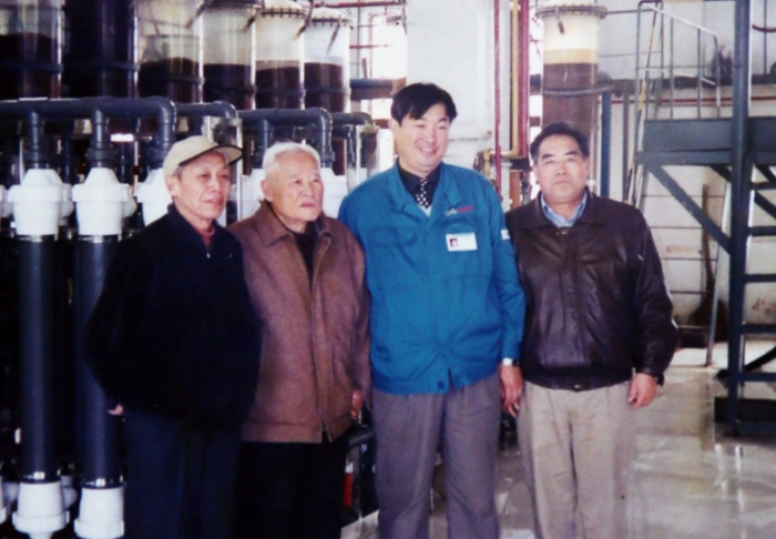 時光回到2000年的3月的一天,春寒料峭乍暖還寒,91歲高齡的曾院士邁著穩(wěn)健步子,在黃海水產(chǎn)研究所科研人員的陪同下來到明月海藻集團老廠區(qū),張國防董事長陪同調(diào)研考察碘醇車間。碘醇車間是利用海帶浸泡水制取碘和甘露醇的一條生產(chǎn)線,曾院士邊看邊詢問工藝技術(shù)改造情況,并提出了一些意見和建議。
