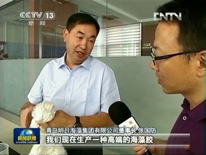 2013年9月19日(中秋節(jié)),CCTV-1《新聞聯(lián)播》頭條播發(fā)【經(jīng)濟轉(zhuǎn)型進行時】打造經(jīng)濟增長的藍色發(fā)動機,報道青島明月海藻集團以科技創(chuàng)新引領(lǐng)藍色經(jīng)濟實現(xiàn)轉(zhuǎn)型升級。